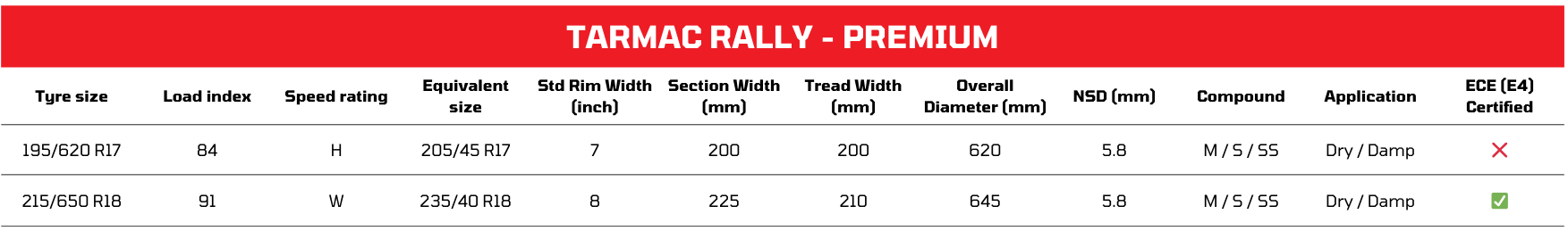 Určeno pro asfaltové rally. Splňuje nejnovější předpisy FIA. Speciálně navržený asymetrický dezén, vynikající konstrukce a směsi zajišťují lepší ovladatelnost a trakci za všech podmínek.